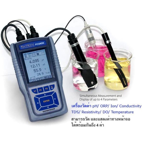 MÁY ĐO ĐA CHỈ TIÊU CẦM TAY PCD 650 Eutech Singapore dùng để đo pH, Đo mV , Đo oxy hòa tan, Đo nhiệt độ ,Đo độ dẫn điện (conductivity,Đo TDS :tổng chất rắn hòa tan, Đo độ mặn( salinity), Đo phần trăm oxy hòa tan,... cho các ngành công nghiệp , thực phẩm, đồ uống, mỹ phẩm, thủy sản, xử lý nước thải,......